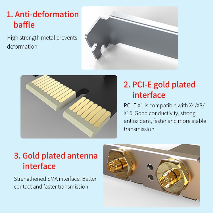 COMFAST Gaming Game 3000Mbps Gigabit Dual-Frequency Wireless Desktop Computer PCIE Wireless Network Card, Coverage: AX200
