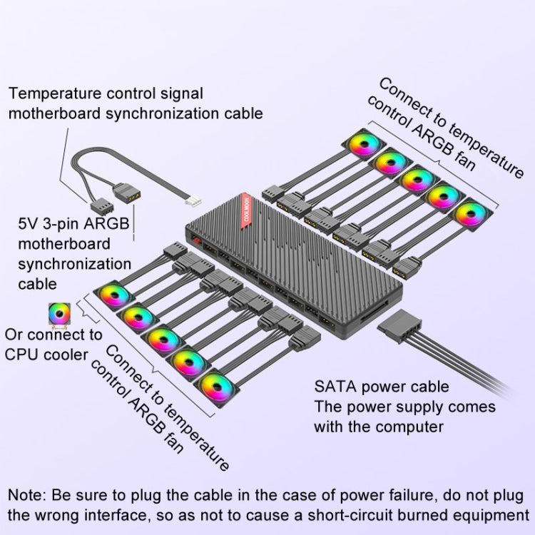 2. Interface: 10 PWM interface (4Pin) + 10 ARGB interface (3Pin)