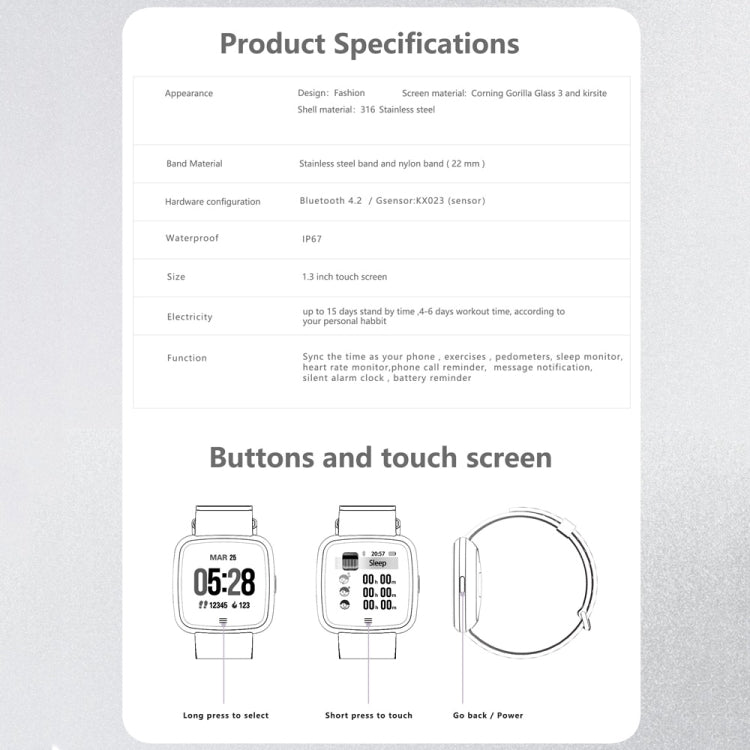 DTNO.1 G12 1.3 inches OLED Color Screen Smart Bracelet IP67 Waterproof, Nylon Watchband, Support Call Reminder /Heart Rate Monitoring /Sedentary Reminder /Multi-sport Mode(Grey)