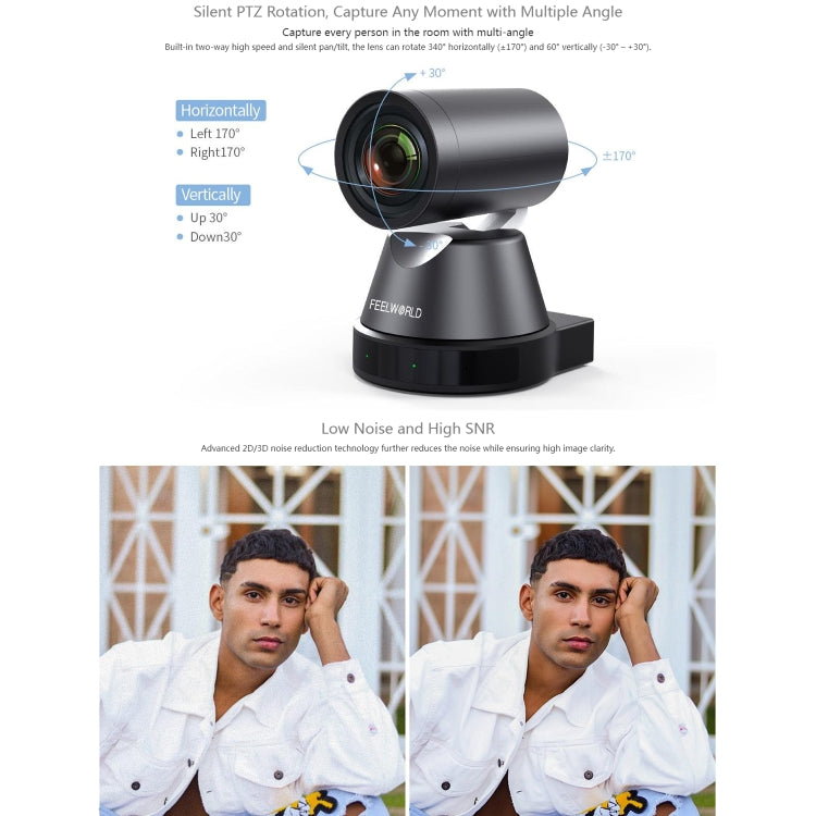 1. Pan Rotation: -170 degree ~ +170 degree