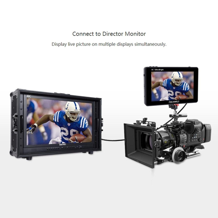 5. Through the monitor 3G-SDI and 4K HDMI inputs, it can connect to various consumer cameras, broadcast cameras and even digital SLRs. You can use its loop-through output interface to display live video or external display extensions and clips on the projector, with embedded audio. In addition, you can monitor audio through the 3.5mm stereo headphone jack or the built-in speakers on the front panel.