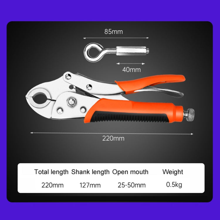 10. Dimensions: The total length of 4-point/6-point pliers is 240 mm, the handle length is 127 mm, the opening of 4-point pliers is 35 mm, the opening of 6-point pliers is 45 mm, the total length of 4-point and 6-point pliers is 220 mm, and the handle length is 127 mm. Opening 25-50 mm