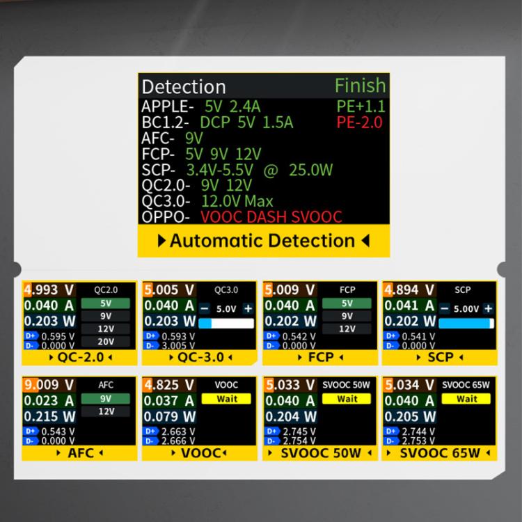 5. Fast charging protocol all-round king, supports a variety of protocol triggers, covering the mainstream fast charging protocols, adjustable output voltage, automatic detection, intelligent triggering, fast charging without worries