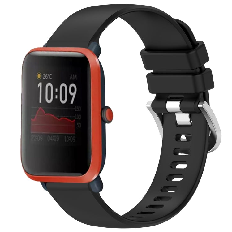 For Amazfit Bip / Bip Lite / Bip 1S 20mm Liquid Glossy Silver Buckle Silicone Watch Band(Black)