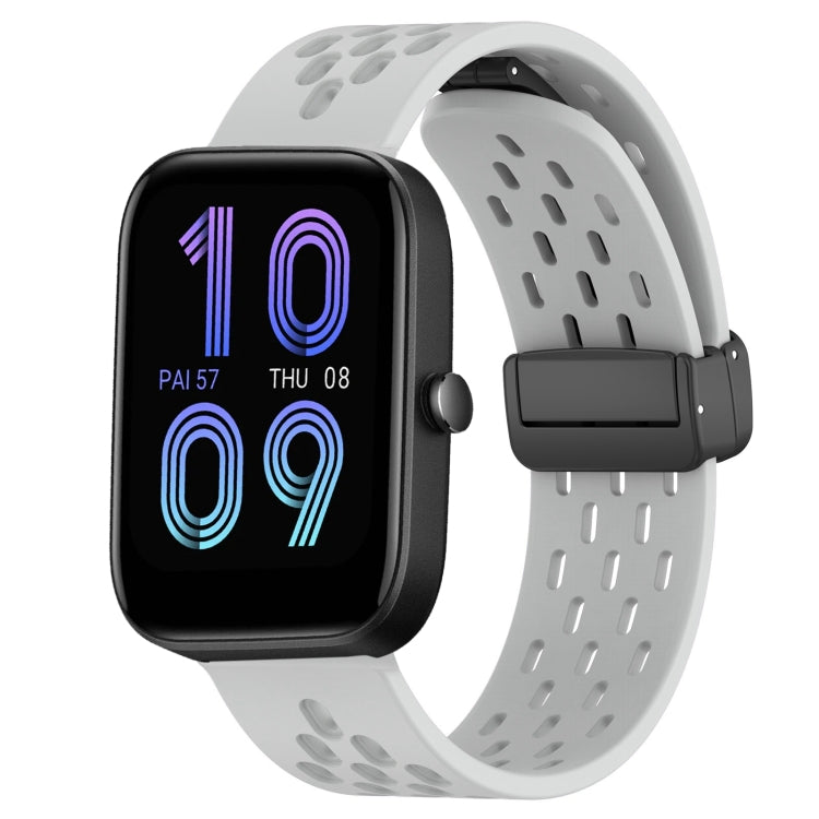 For Amazfit Bip3 20mm Folding Magnetic Clasp Silicone Watch Band(Light Grey)