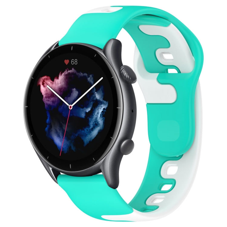 For Amazfit GTR 3 22mm Double Color Silicone Watch Band(Cyan+White)