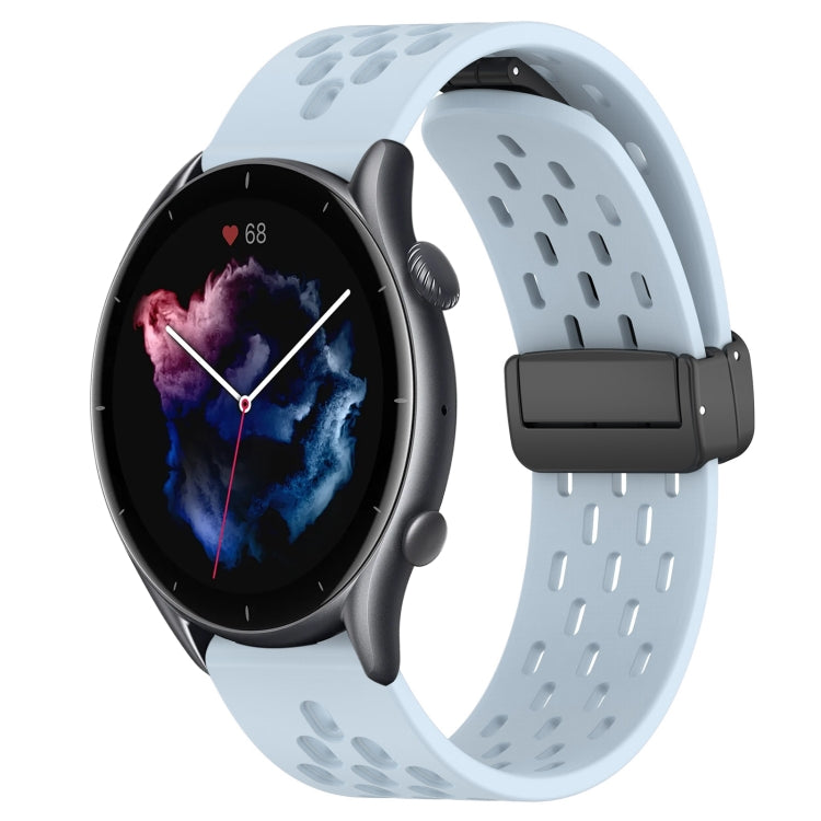 For Amazfit GTR 3 Pro 22mm Folding Magnetic Clasp Silicone Watch Band(Light Blue)