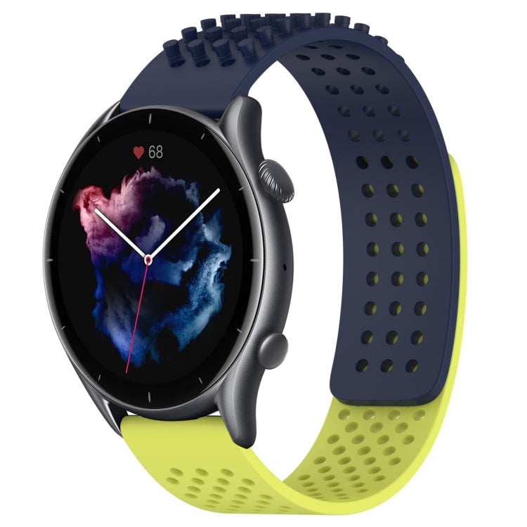 For Amazfit GTR 3 Pro 22mm Holes Breathable 3D Dots Silicone Watch Band(Midnight Blue+ Lime Green)