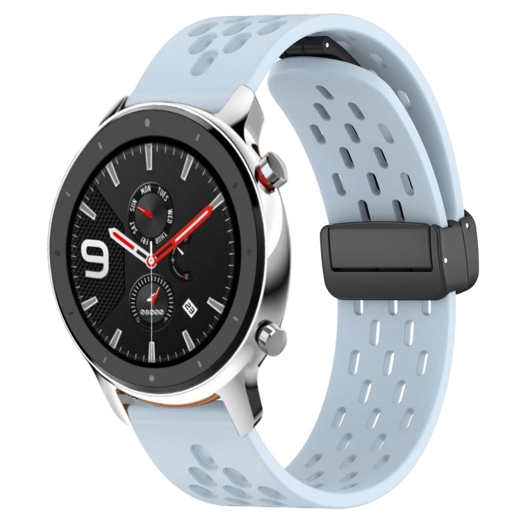For Amazfit GTR 4 Pro 22mm Folding Magnetic Clasp Silicone Watch Band(Light Blue)