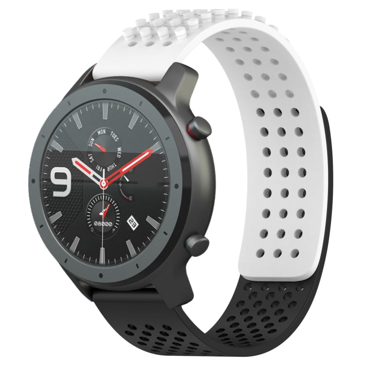 For Amazfit GTR 47mm 22mm Holes Breathable 3D Dots Silicone Watch Band(White+Black)