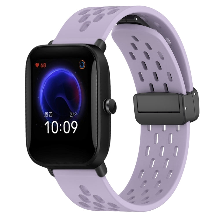 For Amazfit Pop 20mm Folding Magnetic Clasp Silicone Watch Band(Purple)