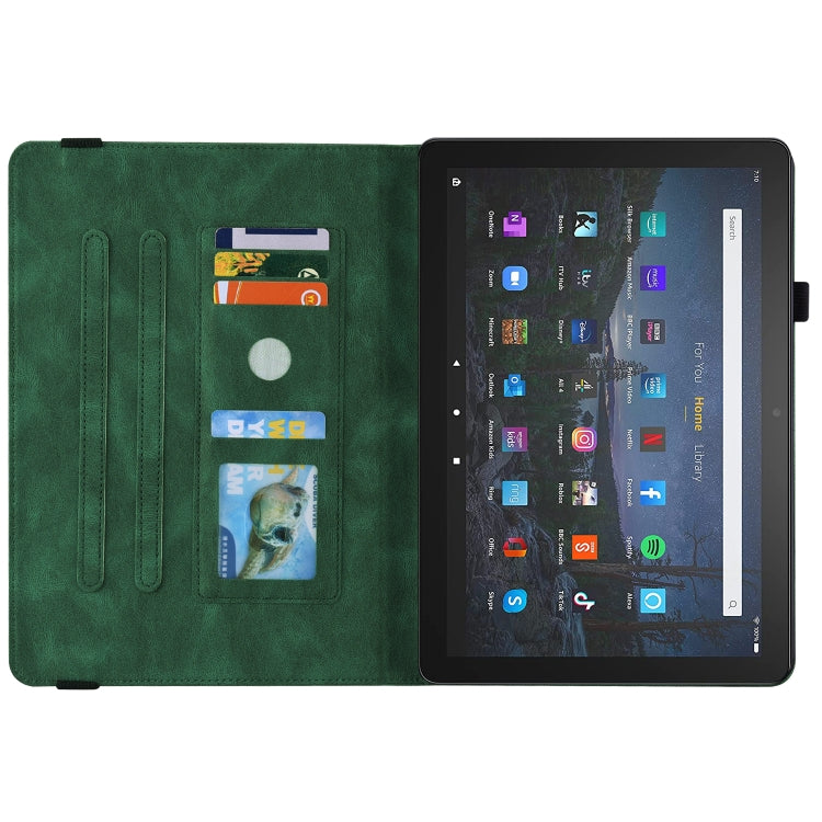 For Amazon Kindle Fire HD 8 2020 Butterfly Flower Embossed Leather Tablet Case(Green)