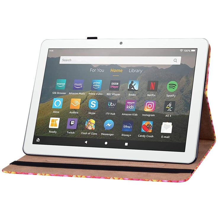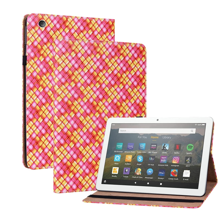 For Amazon Kindle Fire HD8 Color Weave Leather Tablet Case with Holder(Rose Red)