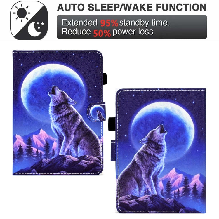 For Amazon Kindle Paperwhite 4 / 3 / 2 / 1 Sewing Pen Slot Leather Tablet Case(Night Wolf)
