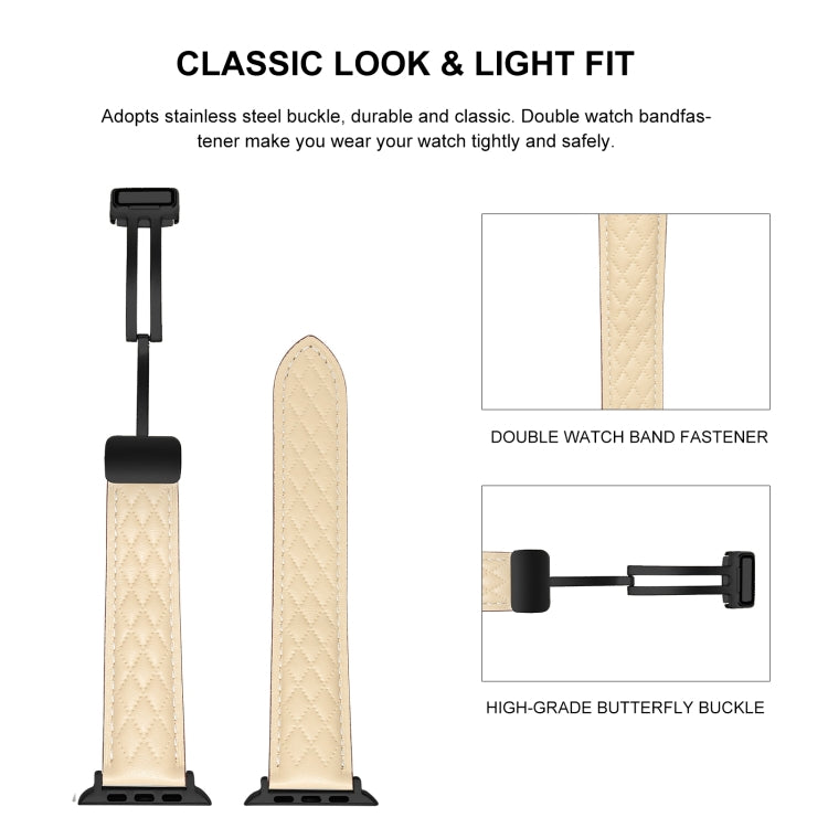 For Apple Watch 9 41mm Folding Buckle Rhombus Leather Watch Band(Brown)
