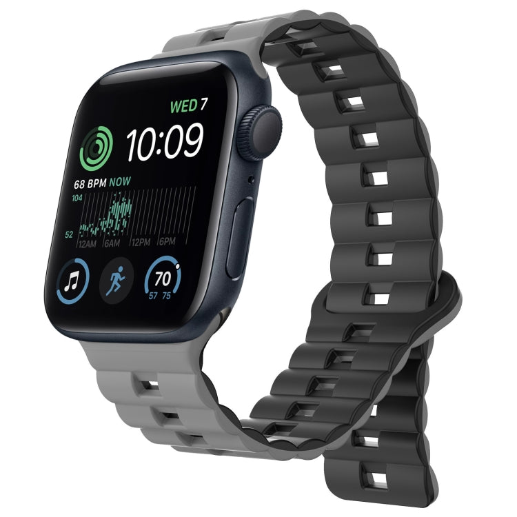 For Apple Watch SE 44mm Reverse Buckle Two Color Magnetic Silicone Watch Band(Grey+Black)