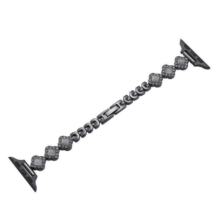 For Apple Watch Series 4 44mm Diamond Four-leaf Clover Metal Chain Watch Band(Black)