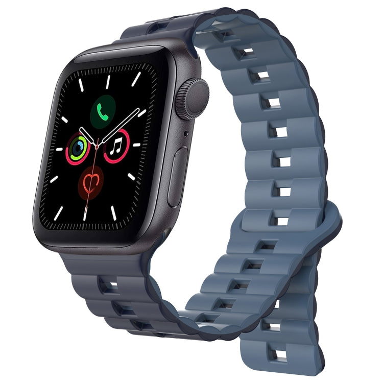 For Apple Watch Series 5 40mm Reverse Buckle Two Color Magnetic Silicone Watch Band(Dark Blue+Light Blue)
