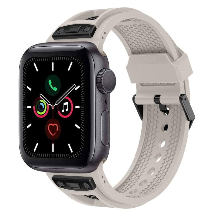 For Apple Watch Series 5 44mm Breathable Stainless Steel Mesh TPU Watch Band(Starlight Black)