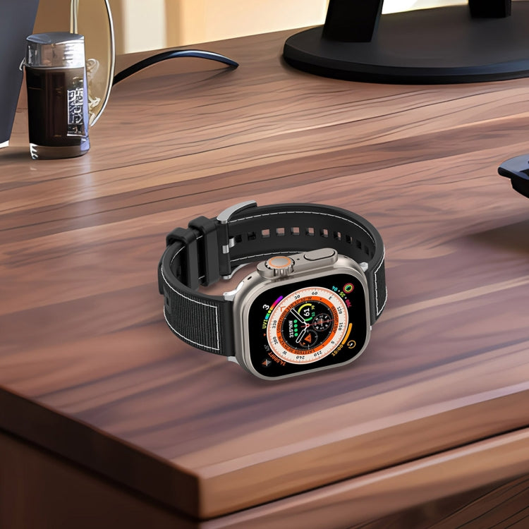 For Apple Watch Series 6 40mm Official Buckle Hybrid Nylon Braid Silicone Watch Band(Black)