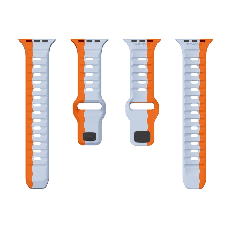 For Apple Watch Series 9 41mm Wave Texture Reverse Buckle Silicone Watch Band(Grey Orange)