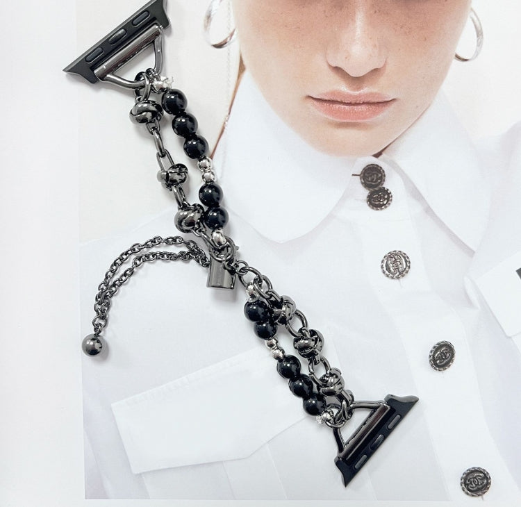 For Apple Watch Ultra 2 49mm Pearl Bracelet Metal Watch Band(Black)
