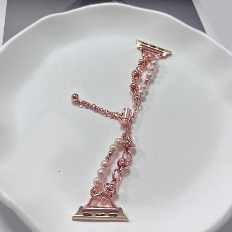 For Apple Watch Ultra 2 49mm Pearl Bracelet Metal Watch Band(Rose Gold)