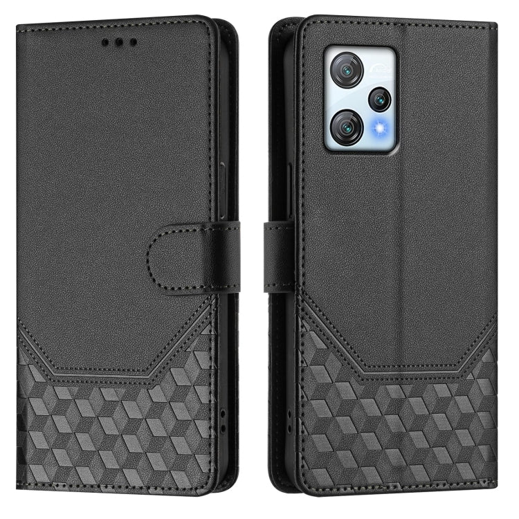 For Blackview A53 Honeycomb Embossing RFID Leather Phone Case(Black)