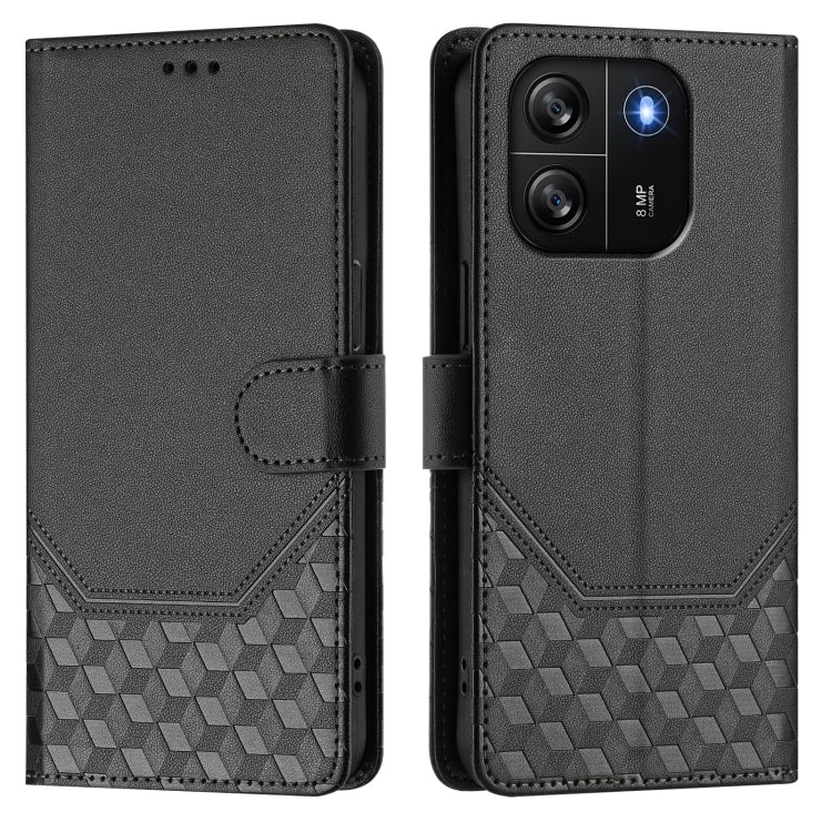 For Blackview Wave 6C Honeycomb Embossing RFID Leather Phone Case(Black)