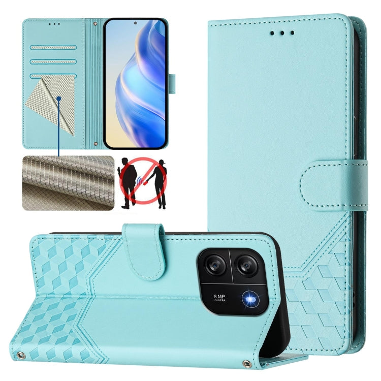 For Blackview Wave 6C Honeycomb Embossing RFID Leather Phone Case(Mint Green)