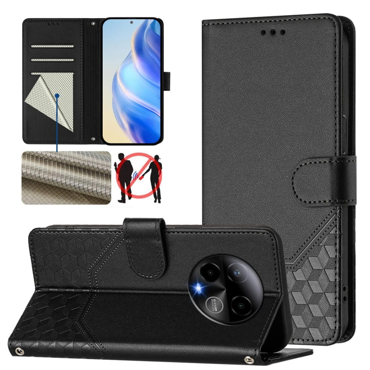 For BLU Bold K50 Honeycomb Embossing RFID Leather Phone Case(Black)