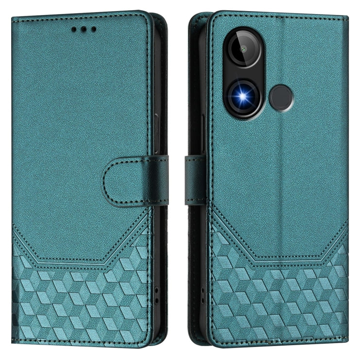 For BLU C9 Honeycomb Embossing RFID Leather Phone Case(Peacock Green)