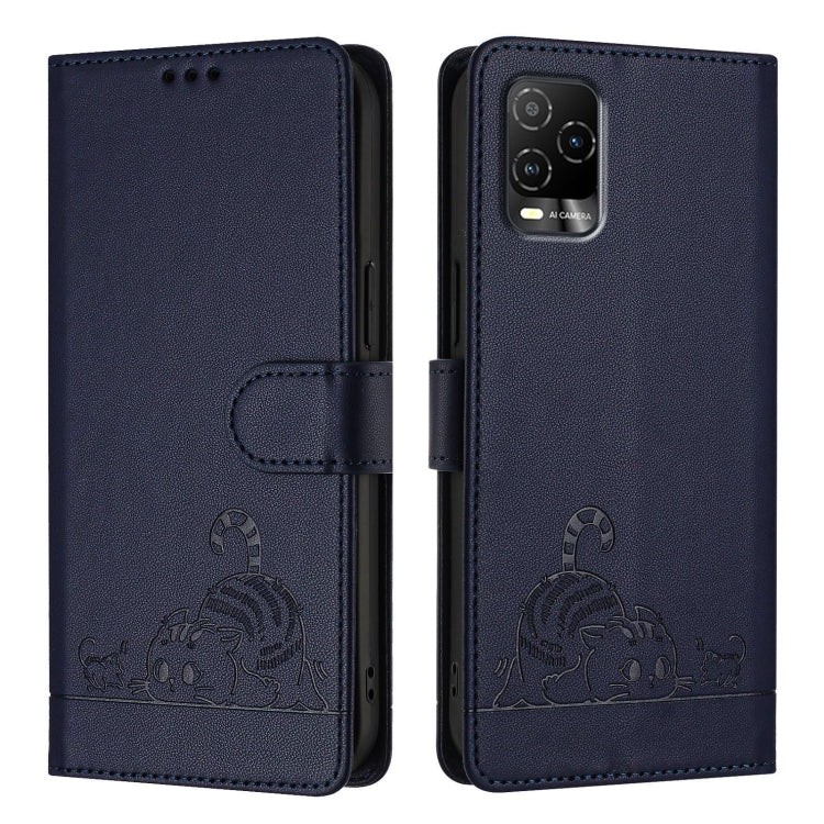 For BLU View 5 Pro Cat Rat Embossed RFID Leather Phone Case with Lanyard(Blue)