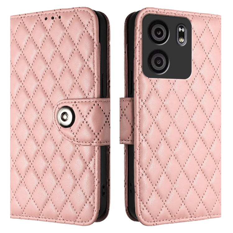 For BLU View 5 Rhombic Texture Flip Leather Phone Case with Lanyard(Coral Pink)