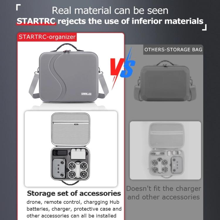 1. Strong compatibility. The storage bag specially designed for DJI Neo fits the device precisely and is very good for storage. It is compatible with Neo drone and RC-N3 remote controller (compatible with RC-N2), which can meet daily use. The upper net bag can be used as a custom space to store some related small accessories, such as charging cables, charging heads, tablets, etc.