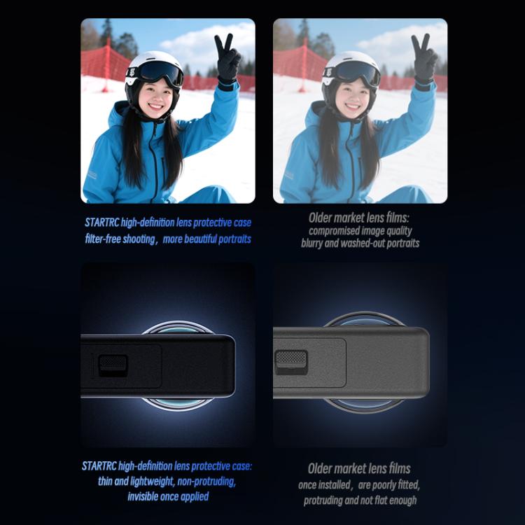 3. Fully enclosed lens protection with a buckle + sealing ring design for easy installation and secure fit. Closely wraps around the lens to provide splash resistance, dust and sand protection, and to block moisture and debris intrusion.
