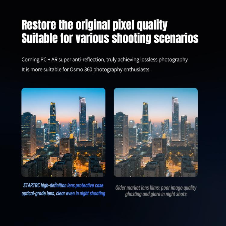 1. Lens protector specially designed for DJI Osmo 360 panoramic cameras. Precision-molded to the actual device, fully compatible with the lens design to prevent direct contact with external elements, protecting against scratches or breakage and extending the camera lifespan.