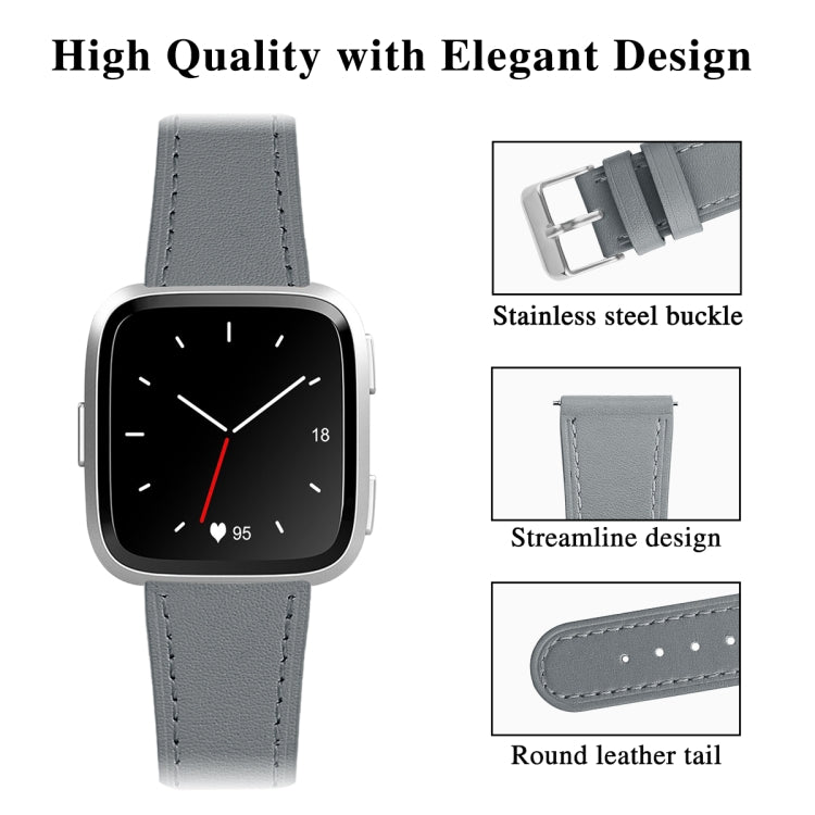For Fitbit Versa 2 / Fitbit Versa / Fitbit Versa Lite Leather Watch Band with Round Tail Buckle(Gray)