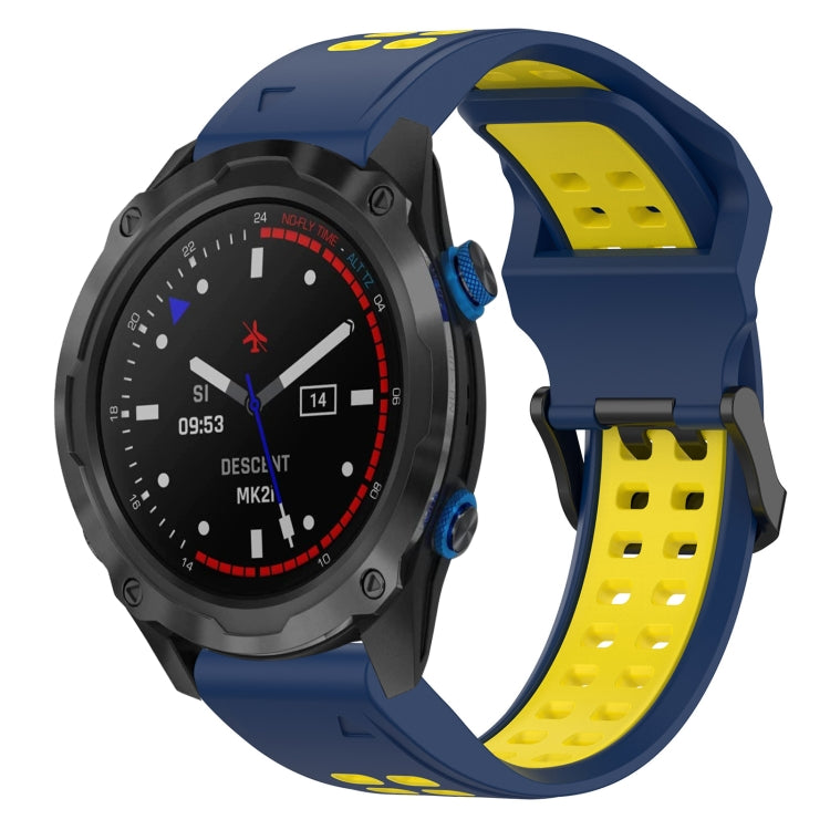For Garmin Descent MK 2i Two Color Reverse Buckle 26mm Silicone Watch Band(Blue+Yellow)