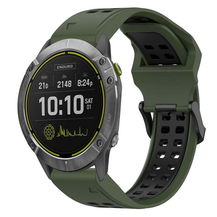 For Garmin Enduro Two Color Reverse Buckle 26mm Silicone Watch Band(Army Green+Black)