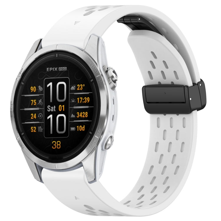 For Garmin Epix Pro 42mm 20mm Holes Magnetic Folding Buckle Silicone Watch Band(White)