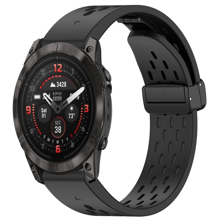 For Garmin Epix Pro 51mm Holes Magnetic Folding Buckle Silicone Watch Band(Black)
