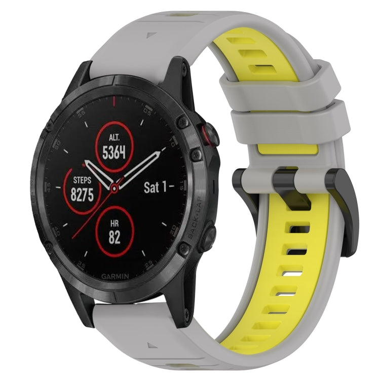 For Garmin Fenix 5 Plus Sports Two-Color 22mm Silicone Watch Band(Grey+Yellow)