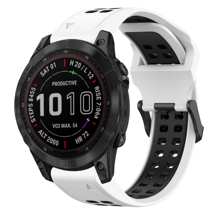 For Garmin Fenix 7 Sapphire Solar Two Color Reverse Buckle 22mm Silicone Watch Band(White+Black)