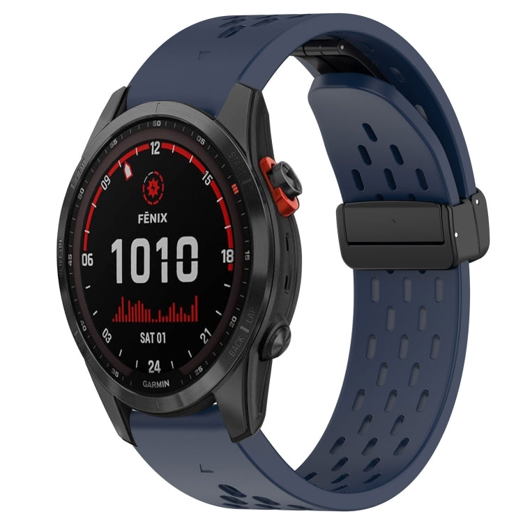 For Garmin Fenix 7 Solar Hole Folding Buckle 22mm Silicone Watch Band(Midnight Blue)