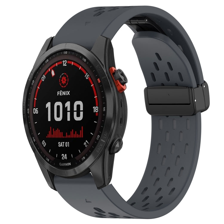 For Garmin Fenix 7S Solar Hole Folding Buckle 20mm Silicone Watch Band(Dark Gray)