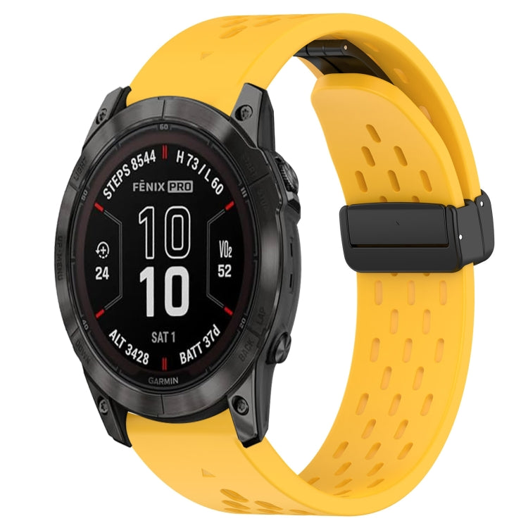 For Garmin Fenix 7X Pro 51mm Hole Folding Buckle 26mm Silicone Watch Band(Yellow)