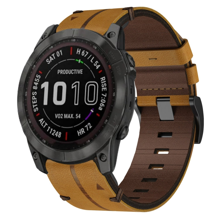 For Garmin Fenix 7X Solar Leather Textured 26mm Watch Band(Brown)