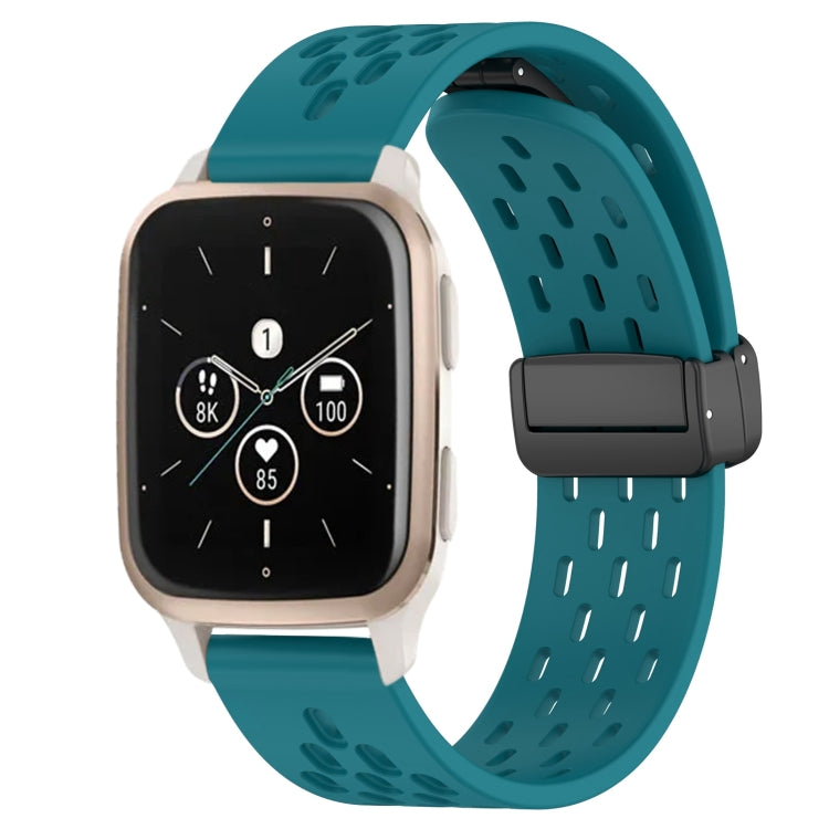 For Garmin Forerunner Sq2 Music 20mm Folding Magnetic Clasp Silicone Watch Band(Hidden Green)