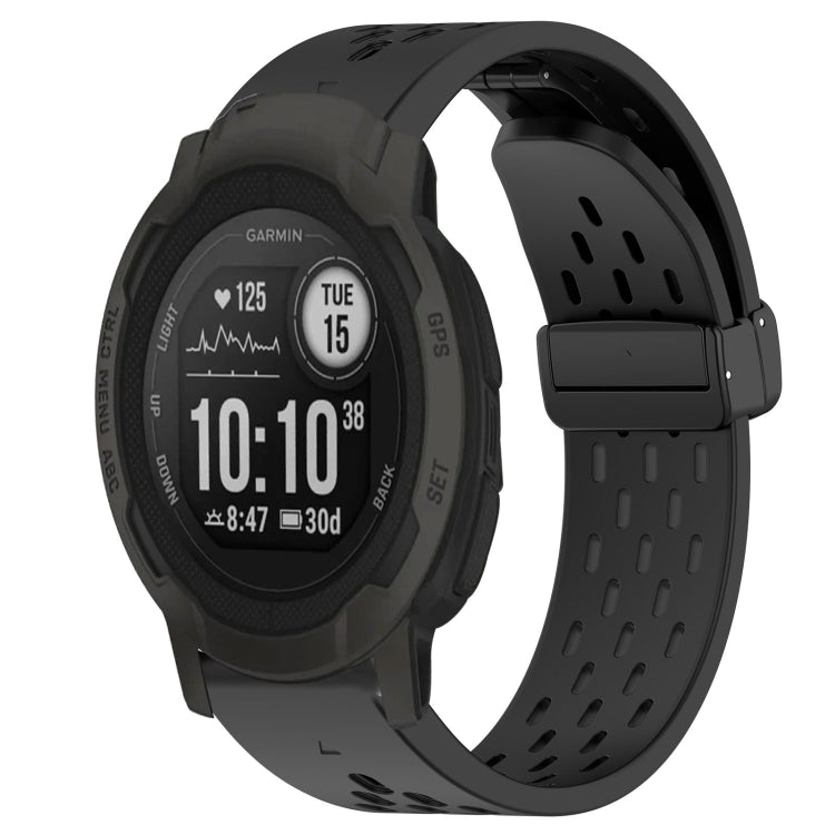 For Garmin Instinct 2 Hole Folding Buckle 22mm Silicone Watch Band(Black)